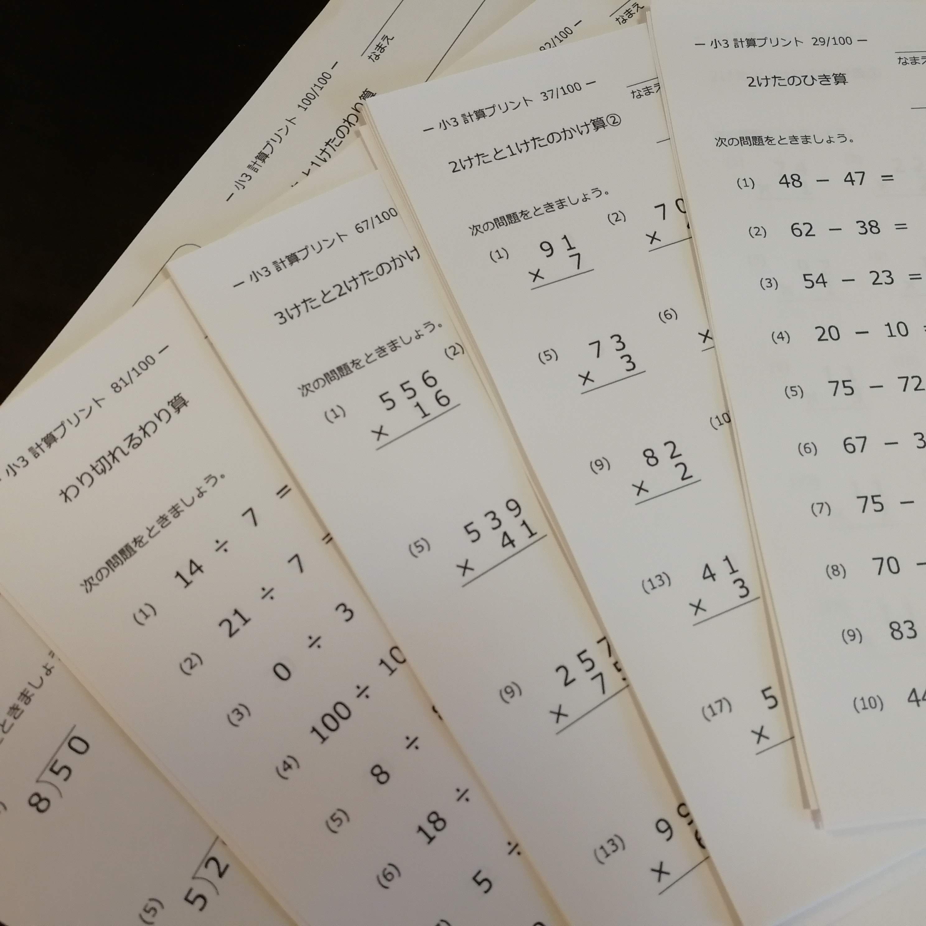 小学3年生で習う計算プリント100枚、合計1935問です。