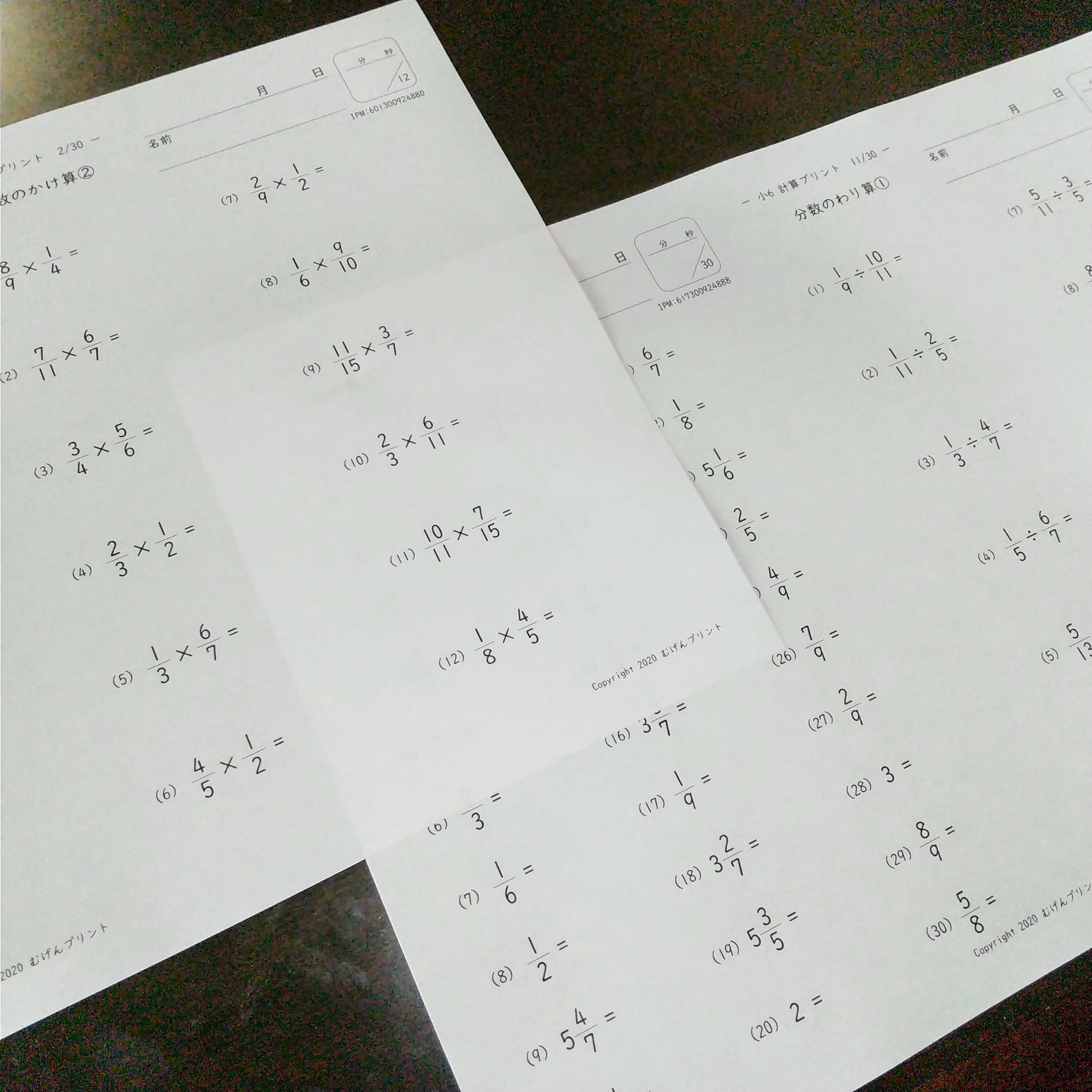 小学6年生で習う計算プリント100枚です。