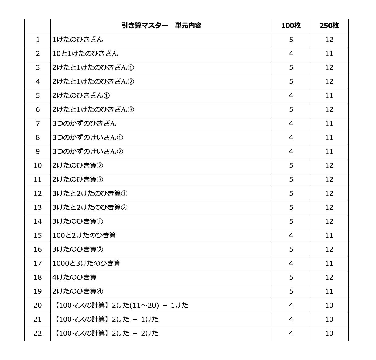 小学1年2年3年で習う「引き算」だけを集めた計算プリント250枚セットです。